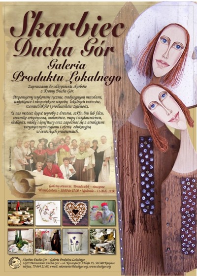 Lokalna Grupa Działania Partnerstwo Ducha Gór serdecznie zaprasza zarówno mieszkańców jak i turystów do odwiedzenia nowo otwartego Skarbca Ducha Gór - Galerii Produktu Lokalnego, miejsca gdzie lokalni artyści, rzemieślnicy i producenci żywności z obszaru Partnerstwa Ducha Gór będą mogli prezentować swoje wyroby. W Galerii można będzie zobaczyć: